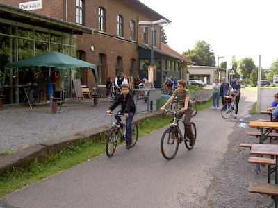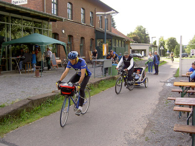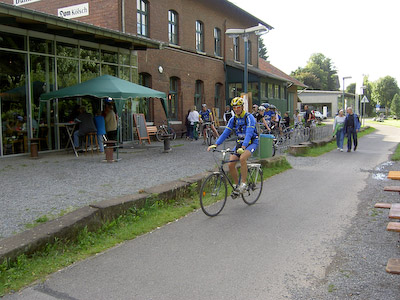 Trotz stürmischem Wetter begab sich wieder eine große Gruppe Radfahrer/-rinnen auf den Weg von der Bahnhofsvision zum Würstchentopf im Steinbruch Stienen bei Venwegen.
