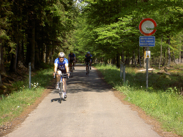 Die Täler wurden immer tiefer, die Ab- und Auffahrten entsprechend länger. Bei Schleif ging es in ein ordentliche Steigung nach Grümmelscheid und gleich auf eine holprige Abfahrt wieder hinunter in ein Tal und wieder hoch auf die Ebene. Jetzt half kein Wind mehr und bei einigen brannten die Kerzen schon auf Sparflamme. Weiter mit Unrhythmischem auf und ab nach Doncols, Sonlez, Harlange. Plötzlich stand auf einem Verkehrsschild “Liefrange” und ein jeder holte noch einmal des Letzte aus seinem Eclair, aber es ging auch lange bergab nach Bavigne an den Lac de la Haute Sûre. Entlang am See sah Marco schon Hügel bei jeder Teppichwelle, das Tempo wurde noch einmal erhöht, bevor es über ein Wehr ans andere Ufer ging und der kleine Schlussanstieg nach Liefrange wieder Freude bracht.