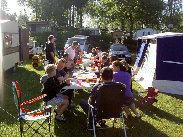 Camping Liefrange, die nette Frau Feider begrüßte uns auf ihren schönen Platz und das Warten auf die automotorisierten Teilnehmer mit der Ausrüstung wurde für ein Hofferdinger genutzt. Zelte aufbauen, Duschen, Essen bereiten. Die Bahnhofsvision hatte wieder ein großartiges Gulasch mit Nudeln spendiert – vielen Dank.