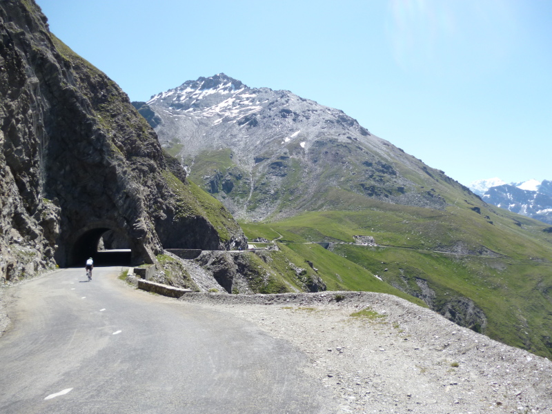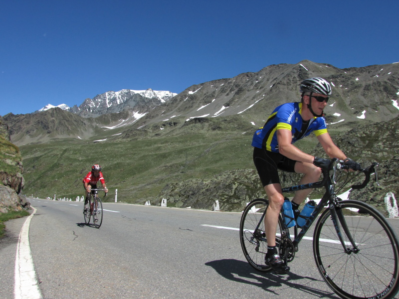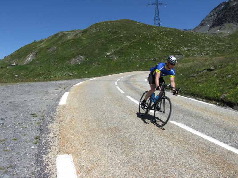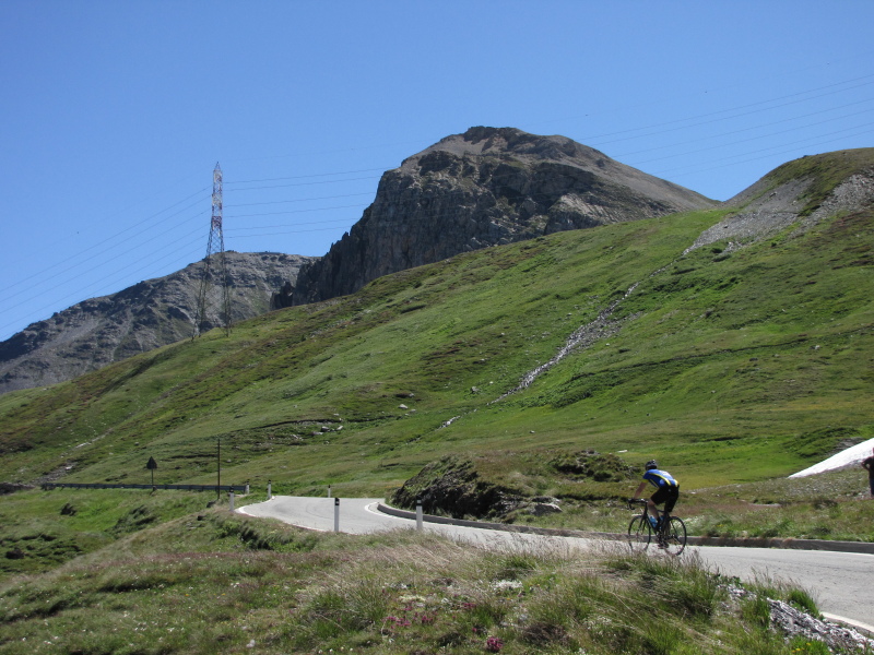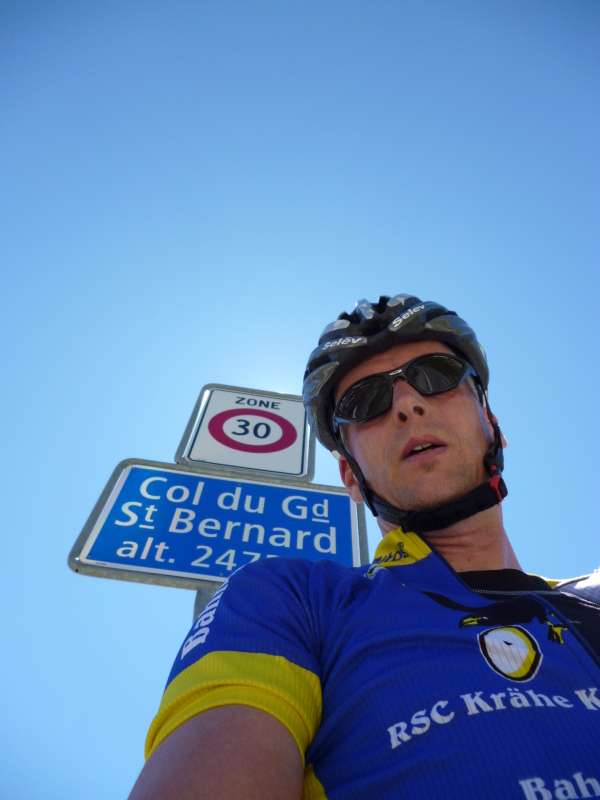 Sonntag dann also die erste Etappe über den relativ unbekannten Col de Champex und über den Großen St. Bernard, der nach einem relativ öden unteren Teil nach oben hin immer schöner (und steiler) wird. Immerhin hielt sich der Verkehr in Grenzen, angesichts der Tatsache, dass der Große St. Bernard eine wichtige Verkehrsverbindung ins Aostatal darstellt.