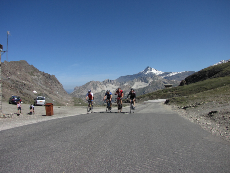 Ein oder zwei kleine Tiefs gab es natürlich auch: die Auffahrt nach Val d’Isere zog sich doch länger als gedacht und die große Hitze machte allen sehr zu schaffen. Da war oben im Hotel wohl jeder insgeheim froh, endlich angekommen zu sein. Natürlich vor allem, um am nächsten Morgen die noch fehlenden 1000 Höhenmeter auf den Iseran in Angriff zu nehmen. Val d’Isere ist zwar ein schöner, mondäner Ski-Ort mit dem gewissen Etwas, ich werde ihn aber nie so richtig ins Herz schließen, weil dort meine Lieblingsradbrille von einem Auto heimtückisch überfahren wurde. RIP, Ekynox SX.