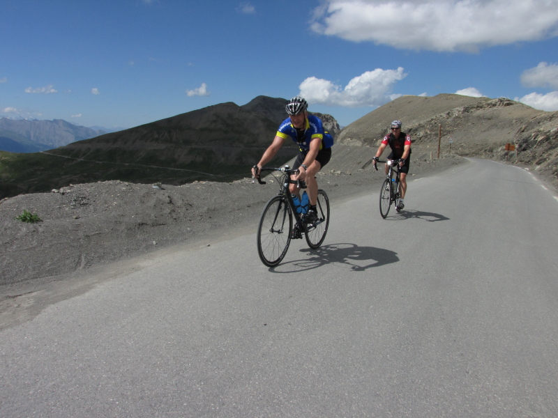 Absolute Highlights waren der Col d’Iseran mit seiner angenehm und flüssig zu fahrenden Steigung in toller Landschaft (von der Passhöhe blickt man direkt aufs Sommerskigebiet) und vor allem der Col de la Bonette mit seiner Höhe von 2802 m. Erst recht, wenn man die kleine Extra-Schleife um den Gipfel fährt, die die letzten 100 Höhenmeter bringt und alle Mühen mit unglaublich tollen Ausblicken belohnt. Gegen den Uhrzeigersinn ist diese kleine Extrarunde übrigens wesentlich giftiger als andersherum – beides ausprobiert!