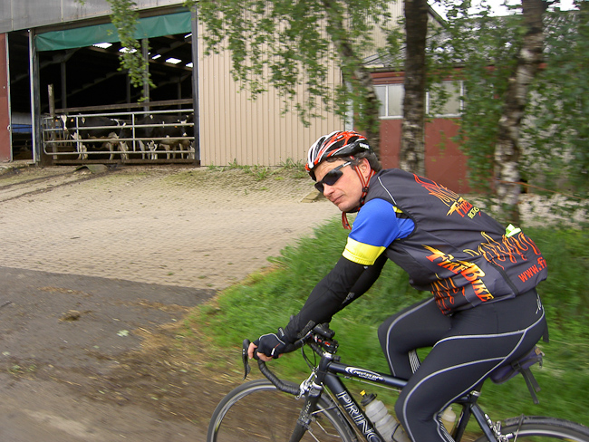 Nach 2 Nächten am Gay-Bach wurde es Zeit für den Rückflug. Das Wetter war gut, Sonne, angenehme Temperatur aber starker Wind aus Südwest, bei überwiegender Fahrtrichtung Nord nicht wirklich störend. Die Frage, wer den Bulli zurückfährt, hatte Michel durch seinen Defekt für sich entschieden. Es ging flach los, genau 258 m weit, dann etwa 9 km fast nur bergauf bis auf 520 m Höhe. Erst ein Stück über die breite B50, dann links ab nach Koxhausen, am Schild „Herbstmühle” scharf links. Über eine 2 km lange kurvenreiche Abfahrt zurück ins Gaybachtal, um gleich auf der anderen Seite mit entsprechender Steigung wieder hinauszufahren. In Karlshausen, nach 14 km Fahrt, waren wir wieder auf Höhe für die folgende fast 4 km lange Abfahrt zur Karlshausermühle am Ihrsenbach. Es folgte natürlich der Anstieg zurück zur Höhe, 6 km lang nach Daleiden. Aber noch nicht genug, zu schön waren die rasenden Abfahrten. Also wieder runter an den Ihrsenbach und wir waren in „Irr”hausen. Wieder schlängelte sich die Straße zurück auf die Höhe nach Reiff, vorbei an „Leiden”born. Jetzt blieben wir aber oben, mit Rückenwind und ordentlich Druck am Pedal (Lutz!) ging es über die welligen Höhen bis Winterspelt. Bis hier waren 45 km mit etwa 800 Höhenmeter zurückgelegt, mit genussvollen Abfahrten und schweißtreibenden Anstiegen durch die Eifeltäler.