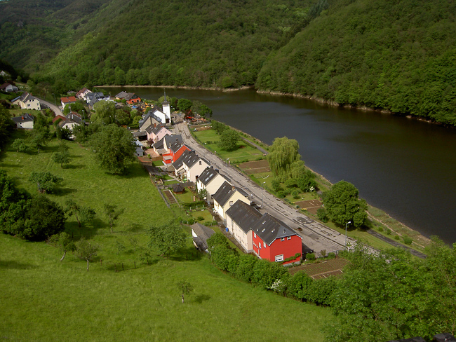 Die Our flussabwärts in der Sonne fahrend, die Regenjacken versteckt, welch ein Spaß nach dem üblen Auftakt am Morgen. Nach einem Blick auf das sonnige Bivels weiter nach Vianden mit der imposanten Burg hoch oben auf dem Berg. Bei Roth an der Our weitet sich das Tal, die Sonne verwöhnt uns, Gentingen, Ammeldingen, wo ist eigentlich Obersgegen, klar, „Obers…”, Schlussanstieg. Nach 140 gefahrenen Kilometern noch einmal 2,5 km lang aus dem Ourtal heraus. Die kleine Straße windet sich durch den Wald den Hang hoch, durch die Felder weiter auf die Höhe und der Blick fiel hinab in das Gaytal bei Körperich. Von hier waren es nur noch eine kurze steile Abfahrt und 2 flache Kilometer bis Obersgegen, Camping Reles Mühle.