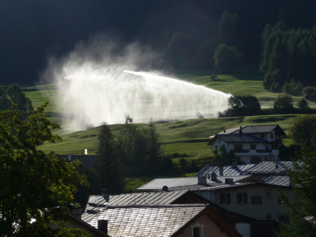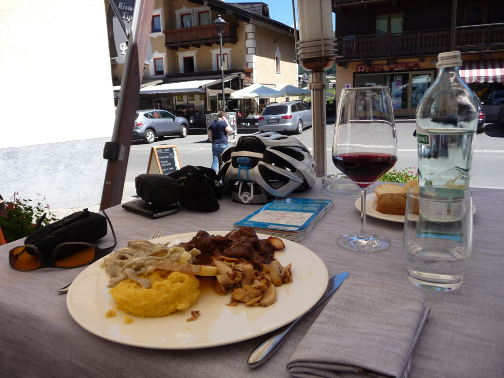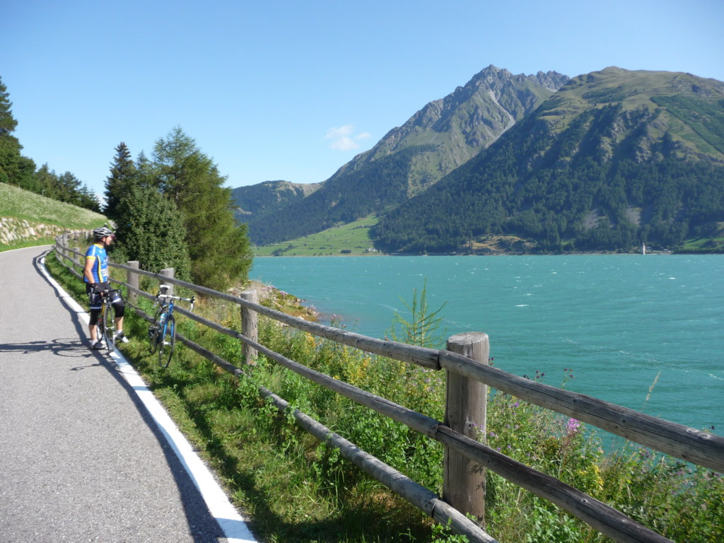 In Livigno [4] stand ein wohlverdienter Ruhetag an, schliesslich hatte man bis zu diesem Zeitpunkt 350km mit 8500Hm hinter sich gebracht – hier galt es vor allem Kraft für die abschließende Königsetappe nach Scuol zu sammeln – dieses Ziel interpretierten unsere beiden Krähen völlig unterschiedlich. Der eine versuchte sich im 1000Hm-MTB-Bergaufschieben, der andere genoss in einem Ristorante tipico die unmittelbare Aussicht auf den Livigno-See. Die gemeinsame Erfahrung war, dass sich in Livigno augenblicklich unglaublich sportliche junge Menschen (bis auf zwei) aufhielten, die sich intensiv mit MTB-Downhill, Laufen, Schwimmen oder was auch immer beschäftigten.