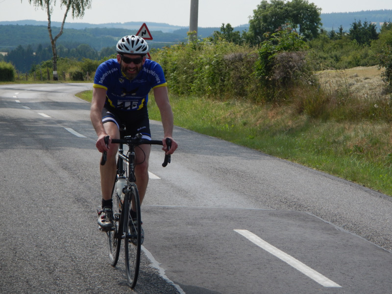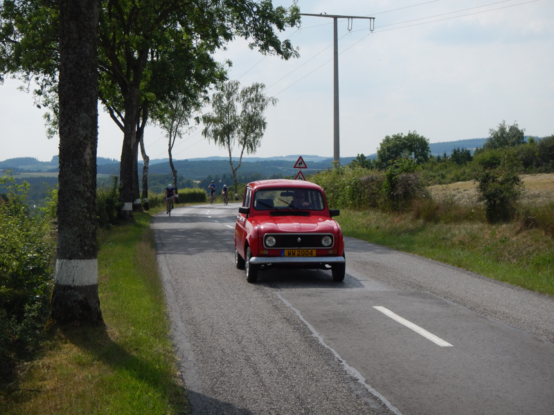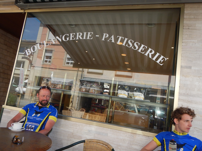 Auf der großen Runde ging es weiter nach Arsdorf und von dort mit schöner Abfahrt durch das Tal der Sauer (Sûre), hoch nach Boulaide und abermals hinab an die Sauer. Bei Flatzbour waren alle wieder auf Höhe. Die nächsten 25 km sollten jetzt mehrheitlich bergab oder flach werden, entsprechend schnell zogen Landschaft und Orte vorbei bis das Tal der Attert erreicht war. In Redange war es Zeit für eine Pause und den obligatorischen Überfall einer Bäckerei.