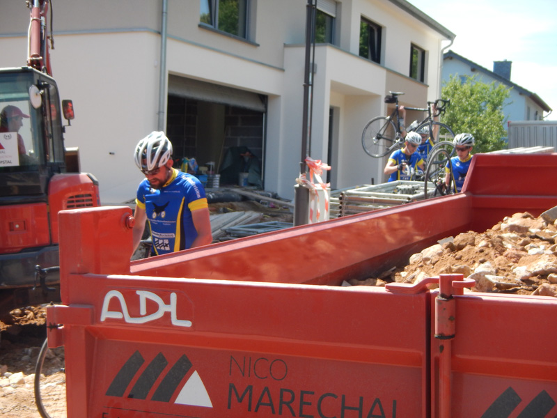 Von Kautenbach begann die Strecke über den Radweg durch das Tal der Wiltz, nach Merkholz und später über die Straße nach Wiltz. Der Radweg durch das „Tal“ hatte dabei so seine eigenen Herausforderungen. Immer wieder kleine steile Knippe und gleich wieder bergab. Kein Wunder das so mancher Luxemburger von Kind an dicke Waden bekommt und Radsportler wird. In Wiltz dann die erste Ankunft in Route Barrée. In der Innenstadt waren die Straßen aufgerissen, nach einigem Hin und Her ging es dann einfach durch die Baustelle und zurück auf Strecke. Bei Roullingen ging es ab auf einer dieser kleinen Sträßchen die im ständigen Auf und Ab durch die luxemburgischen Felder und Wälder führen. Immerhin waren nach den ersten 15 km schon 370 Höhenmeter absolviert.