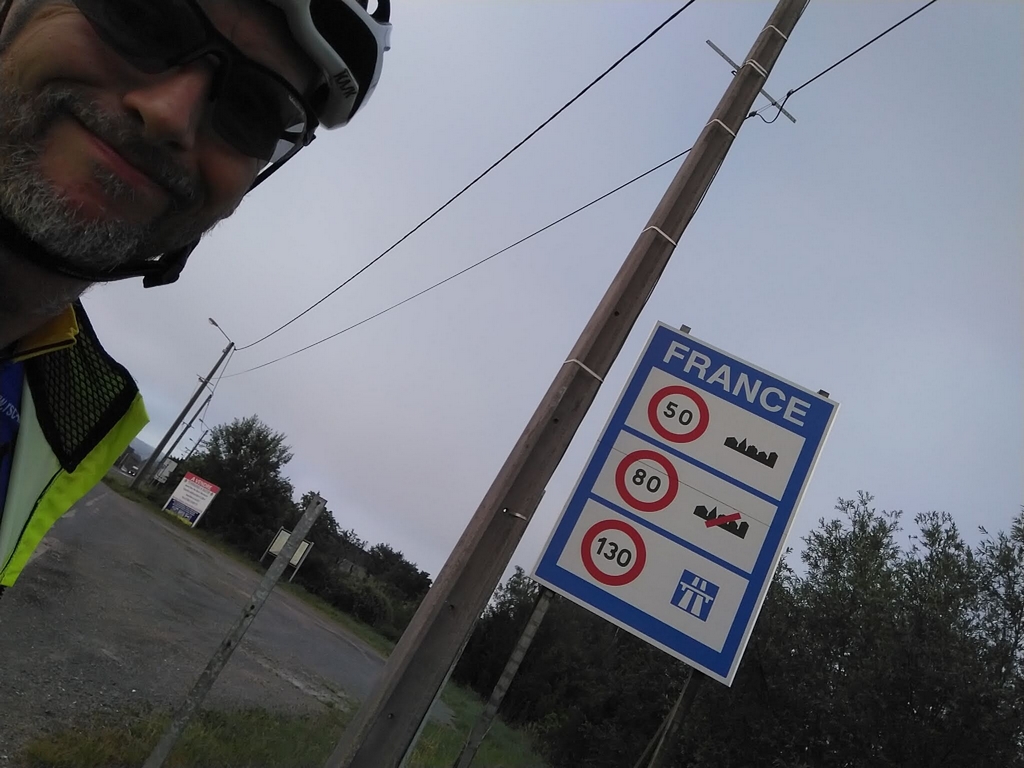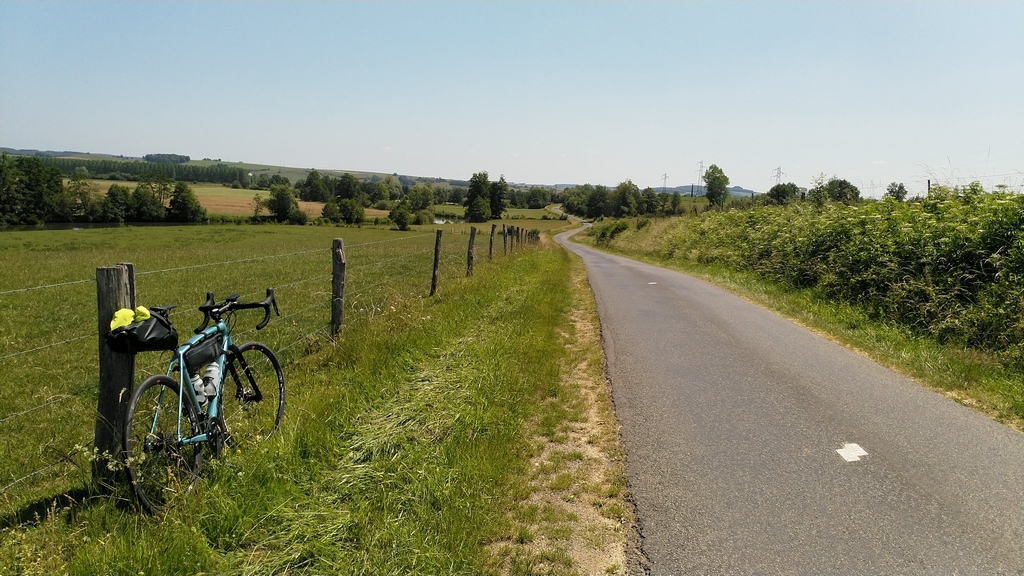 Am Chateau de Rémilly verließ ich den Maasradweg und schwenkte Richtung Osten, Richtung Luxemburg. Der erhoffte Westwind kam leider aus dem Osten, also Gegenwind für die letzten 160 km. Langsam wurde es zäh. Aber zuerst wurde es heiß. Und dann hügelig. Nach einem Zwischenhoch kurz vor Longuyon war ich froh, dort die letzte geplante Pause machen zu können, Erdbeerkuchen, es war schließlich Nachmittag. Leider kein Kaffee. Das zweite Zwischenhoch blieb allerdings aus. Hoch ging es aber nach Luxembourg, die letzten rund 70 km würden nochmal um die 700 Höhenmeter haben. Dazu Gegenwind und Hitze und so langsam war ich dann doch etwas angeknockt. Eine Welle folgte der nächsten, so grausam hab ich Luxembourg noch nie erlebt. Die letzten 40 oder 50 km waren also eher qualvoll und es ging nur noch ums Ankommen. Letzte Verpflegungsversuche an einer Tankstelle waren dann erfolgreich und ich rollte gegen halb Acht abends durch Schengen an die Mosel. Flott rüber nach Perl ins Hotel und Beginn des Wiederaufbauprogramms. Kurz einschlafen auf dem Sessel im Hotelzimmer, Essen, Schlafen. Am nächsten Tag das nächste Abenteuer: Deutsche Bahn und nach Hause.