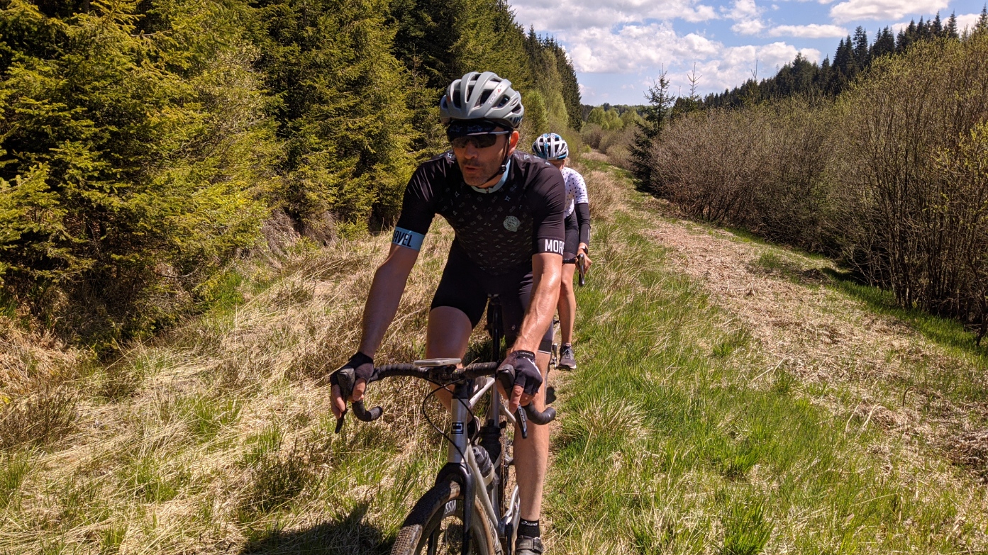 Thorsten hatte eine schöne Graveltour – oder sollen wir Kiesfahrt sagen – ausgesucht. Über wenig Vennbahnweg aber mit viel Waldweg vom Indetal rüber ins Rurtal, von Küchelscheid über Pfade zum Schwarzbach, durchs Venn zur Hill, von der Hill hoch, zur Hill runter, Ternell, Wesertal, Raeren und durch das bis Köln bekannte Itertal.